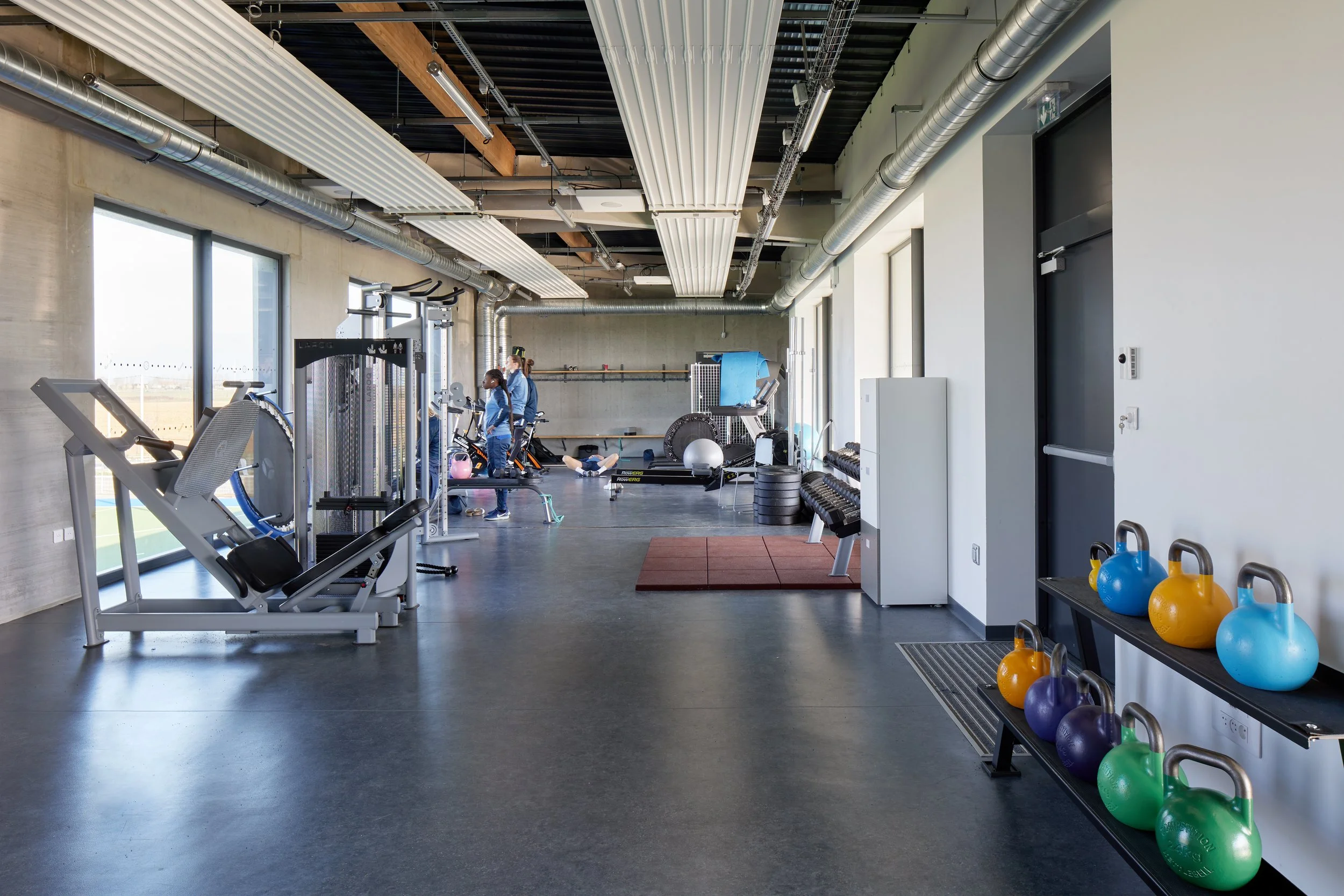 L’implantation des tribunes perpendiculairement à cet axe répond également à ces prérogatives. Ces longs bâtiments parallélépipédiques s’étirent sur presque toute la longueur des terrains. L’idée est de créer deux bâtiments à la présence forte et visible créant ainsi un écran d’appel depuis l’espace public.
